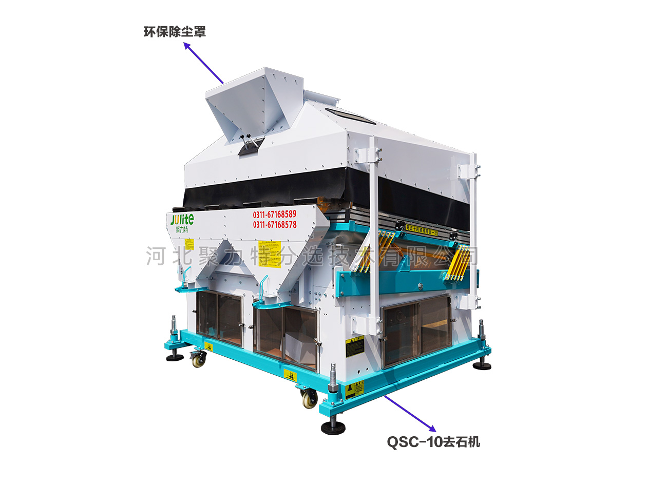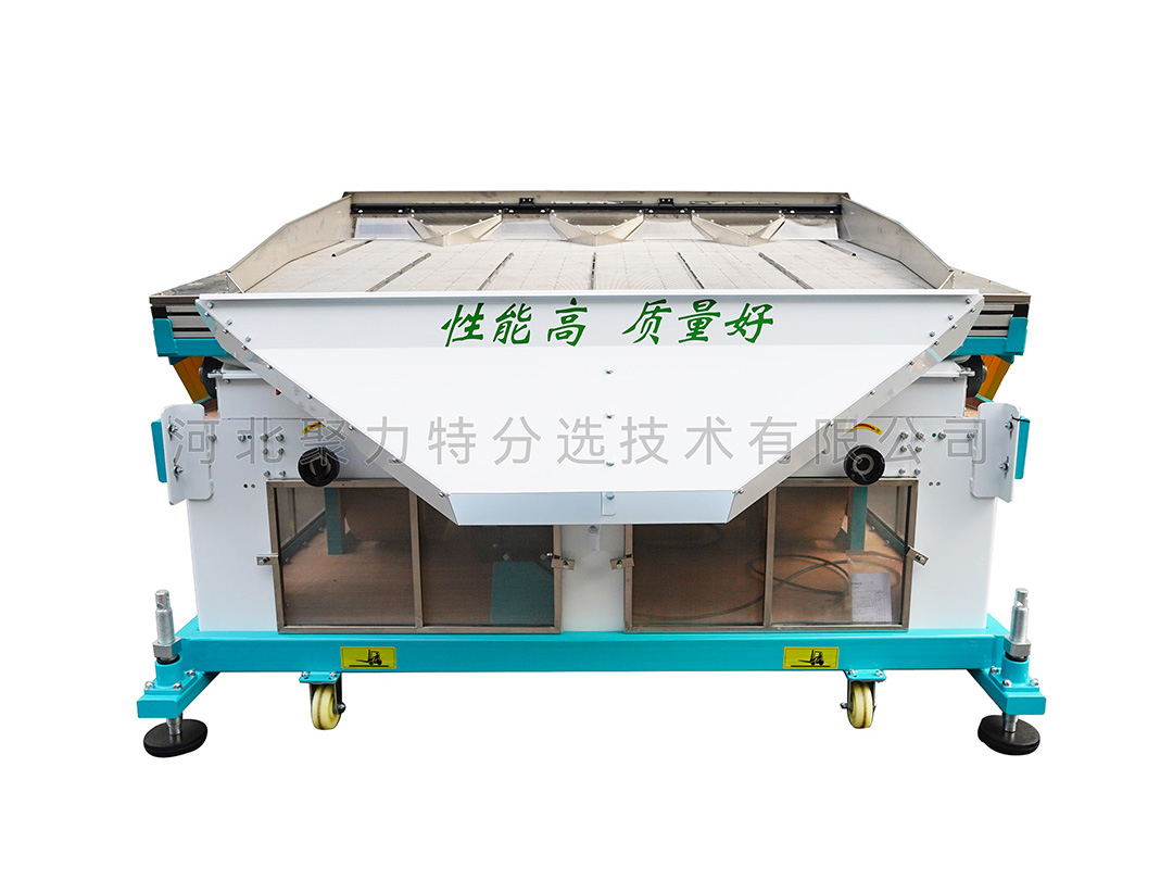 根據(jù)物料中作物和石子的比重差異,通過調(diào)整風壓、振幅等參數(shù),使比重較大的石子沉到底部貼著篩面由低向高運動,比重較小的作物懸浮在表面由高向低運動,從而達到分離的目的。